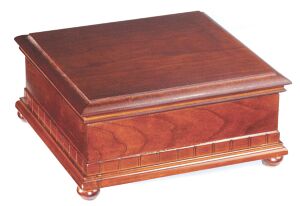 The Leipzig antique replica music box is a vintage 1800's replica, handcrafted in an oak cabinet with cherry veneer finish.