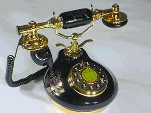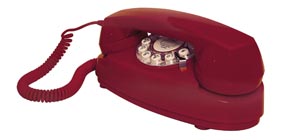 Like the vintage Sultan phone, these beautiful antique 1920's European design replica telephones are constructed of solid woods and veneers with a cherry finish. They are elegantly designed with nickeled brass hardware, wood hand piece and 44 inch cloth cord. These nostalgic phones features a rotary look dial with a modern pushbutton keypad, and tone/pulse switch with ringer volume control. They plug into standard US phone jacks. Item # CR93-01 Free Shipping in the Continental USA! $69.99 |
