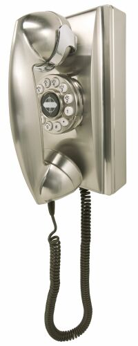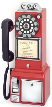 This classic 1950's vintage replica pay phones will take you back to the days of old fashioned phone booths and five cent calls. Drop in a coin and you'll hear the original brass jingle, and the push-buttons even have an authentic rotary look. This authentic replica telephone is wall or desk mountable with heavy-duty ABS plastic cabinet, chrome accents, full featured coin bank with lock and key, ringer control and tone/pulse switchable. 90 Day limited warranty. These classic pay telephones are available in black, red and brushed chrome. Click Here to see it in Red. Click Here to see it in Brushed Chrome. Item # CR56 Free Shipping in the Continental USA! $83.99 |
