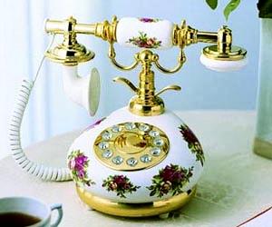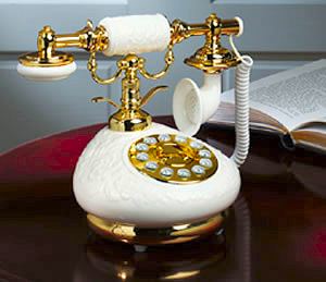 This beautiful antique style replica of the old vintage French porcelain phone will provide a touch of elegance to any room. The base and handset of these classic telephones are porcelain accented with gold and delicate flower patterns. The gold accented rotary fashion plate has a modern pushbutton keypad. These elegant phones include a tone/pulse switch, ringer volume control and redial. There are seven nostalgic telephone styles to choose from.