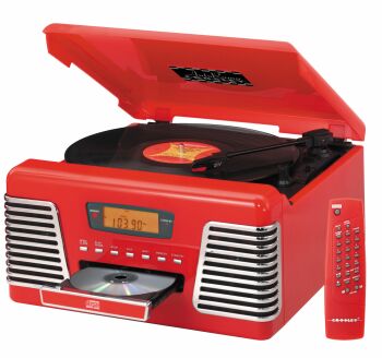 nostalgic AutoRama CD features an AM/FM Radio, a 3 speed turntable record player, a front loading