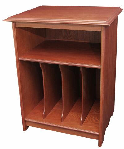 This nostalgic handcrafted wood phonograph stand proudly displays your favorite Crosley antique replica turntable or vintage record player in any setting. Constructed of hardwoods and veneers, the ST47 comes complete with a wood storage shelf and dividers perfect for storage of your complete music collection. Click Here to see it in Oak.