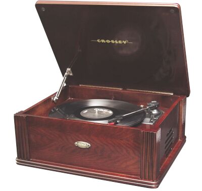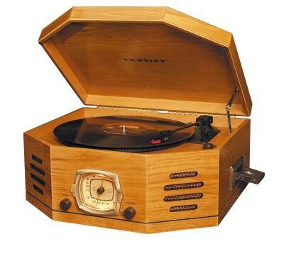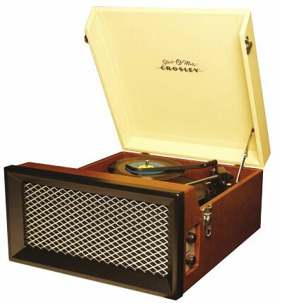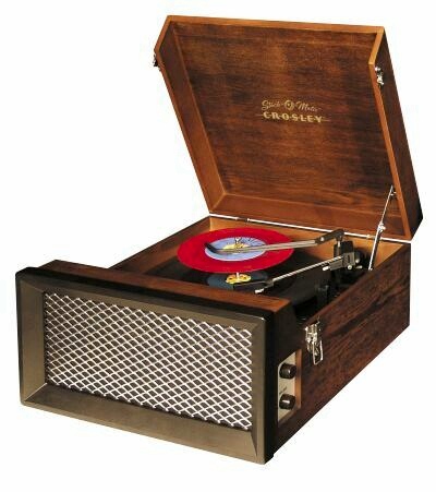 Everyone knows that nothing replicates the classic sound of vinyl. With Crosley’s nostalgic Decorative antique replica turntable you can relive the good old days with all the warmth and enjoyment that only a vintage style turntable record player can provide. Lay the needle gently down and sit back to enjoy your favorite tune come to life complete with the memorable cracks and pops. And as if the incredible sound weren’t enough, Crosley combines intricate scrollwork and a hand woven vintage grill cloth for that added dose of nostalgia. The Decorative Turntable record player plays all 3 speeds and is sure to delight any music lover. Available in oak and Cherry. Click Here to see it on the stand (optional - sold separately). Click Here to see it in Oak.