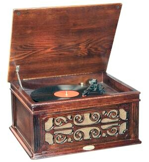 This beautiful antique replica turntable record player has the nostalgic 1940 look of simplicity with its 4 line design throughout its old vintage style cabinet. Click Here to see it in Oak.