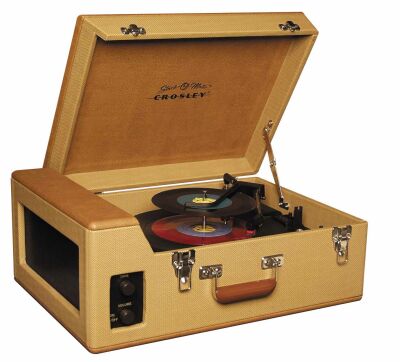 chrome grillwork. The CR89 Traveler record player is available in Brown/Tweed and can