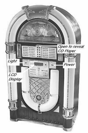 for our times, this jukebox features a state-of-the-art Sanyo 10 compact disc