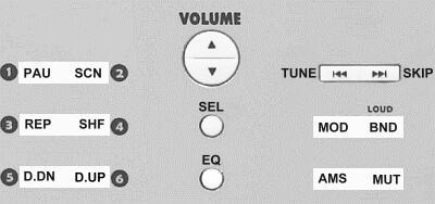 selected mode ~ radio or CD player as well as song track, radio station frequency, volume level, etc.