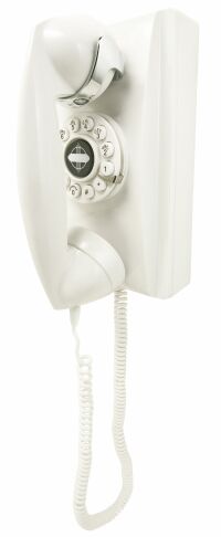 The telephone returns to the wall in this vintage 1956 classic companion to the desk-style version. Designed for convenience, the old style 500 series wall phone was most often found in kitchens where tabletop space was at a premium. It also became popular in such areas as the basement, covered patio and garage. Click these links to see it in: