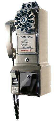 This classic 1950's vintage replica pay phones will take you back to the days of old fashioned phone booths and five cent calls. Drop in a coin and you'll hear the original brass jingle, and the push-buttons even have an authentic rotary look. This authentic replica telephone is wall or desk mountable with heavy-duty ABS plastic cabinet, chrome accents, full featured coin bank with lock and key, ringer control and tone/pulse switchable. 90 Day limited warranty. These classic pay telephones are available in black, red and brushed chrome. Click Here to see it in Red. Click Here to see it in Brushed Chrome. Item # CR56 Free Shipping in the Continental USA! $83.99 |