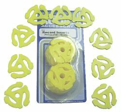 Optional 30-pack of 45 RPM inserts (spindle adaptors). Permits 45 rpm record