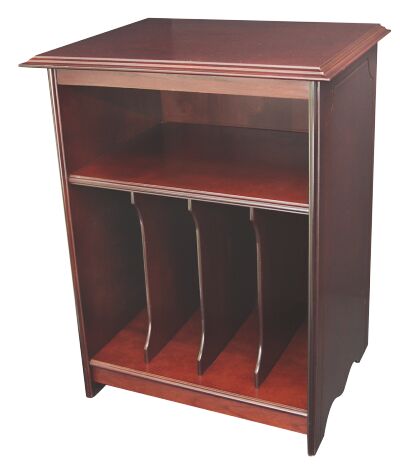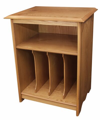 This nostalgic handcrafted wood phonograph stand proudly displays your favorite Crosley antique replica turntable or vintage record player in any setting. Constructed of hardwoods and veneers, the ST47 comes complete with a wood storage shelf and dividers perfect for storage of your complete music collection. Click Here to see it in Oak.