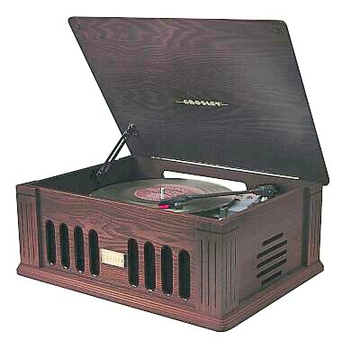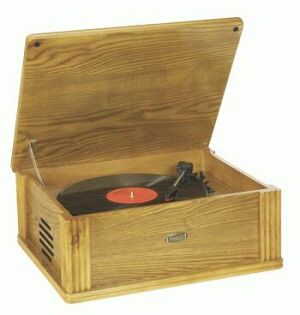 Everyone knows that nothing replicates the classic sound of vinyl. With Crosley’s nostalgic Decorative antique replica turntable you can relive the good old days with all the warmth and enjoyment that only a vintage style turntable record player can provide. Lay the needle gently down and sit back to enjoy your favorite tune come to life complete with the memorable cracks and pops. And as if the incredible sound weren’t enough, Crosley combines intricate scrollwork and a hand woven vintage grill cloth for that added dose of nostalgia. The Decorative Turntable record player plays all 3 speeds and is sure to delight any music lover. Available in oak and Cherry. Click Here to see it on the stand (optional - sold separately). Click Here to see it in Oak.