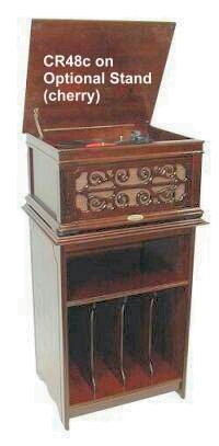 The vintage style 1940's Classic antique replica turntable record player is hand crafted in oak or cherry. This old nostalgic turntable features a hinged top for easy access. Matching stands are available for this model. Click Here to see it in Cherry. Click Here to see it on the stand (optional - sold separately).
